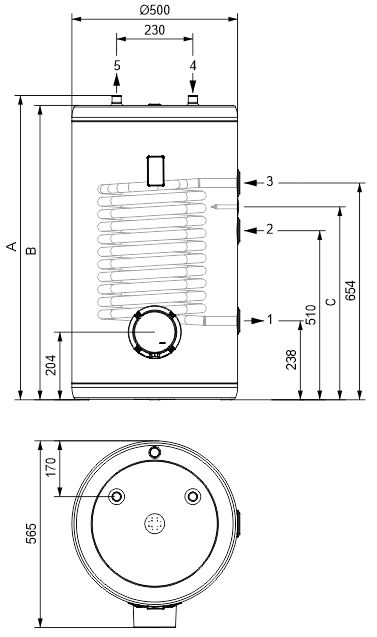 Priključne dimenzije toplotnega izmenjevalca